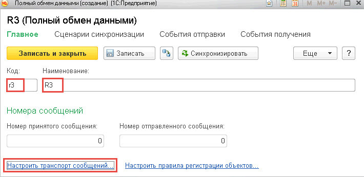 8. В центральном узле добавляем новый узел R3 c префиксом r3. Через все функции открываем полный план обмена. Настраиваем транспорт для обмена сообщениями.