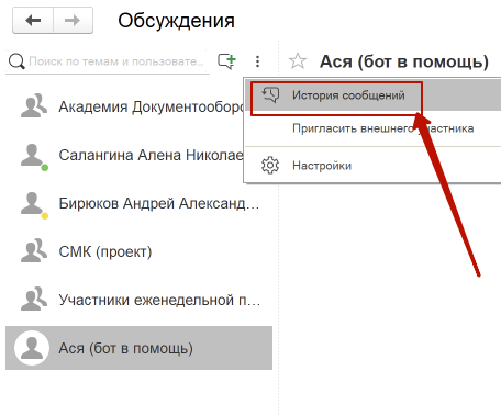 На вкладке обсуждения пользователь видит все свои чаты, в которых участвовал.